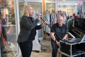 Insgesamt sorgte die Frühlingswoche für gute Laune im Wiehler Zentrum. Am verkaufsoffenen Sonntag gab es viel Live-Musik beim „Musikalischen Frühschoppen“ an mehreren Stellen in der Innenstadt. So traten in der Weiher-Passage Sängerin Catrin Dißmann und am Klavier ihr Begleiter René auf. Zum Rathausplatz lockte die Musik des Duos „Akustikzeit“ mit Tommy & Sabrina sowie die Cover-Band mit Sängerin Melina Kyranoudis, Leon Zurawski, Guido Schuster und Gastmusiker Marvin Meinhold.