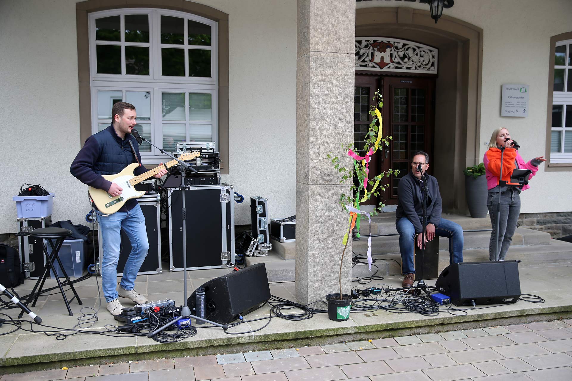 Insgesamt sorgte die Frühlingswoche für gute Laune im Wiehler Zentrum. Am verkaufsoffenen Sonntag gab es viel Live-Musik beim „Musikalischen Frühschoppen“ an mehreren Stellen in der Innenstadt. So traten in der Weiher-Passage Sängerin Catrin Dißmann und am Klavier ihr Begleiter René auf. Zum Rathausplatz lockte die Musik des Duos „Akustikzeit“ mit Tommy & Sabrina sowie die Cover-Band mit Sängerin Melina Kyranoudis, Leon Zurawski, Guido Schuster und Gastmusiker Marvin Meinhold.