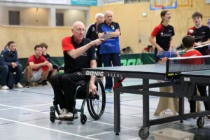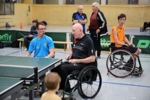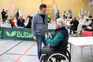 Zudem gab es einen Fitness-Parcour für alle und mit „Fit für 100“ Bewegungsangebote für jedes Alter. Einen umjubelten Auftritt hatten „Die Pompösen“, eine Cheerleader-Gruppe des HBW-Wohnheims für Menschen mit Beeinträchtigung. Beim Rollstuhltennis traute sich Bürgermeister Ulrich Stücker, gegen den früheren Paralympics-Gewinner Charly Weber anzutreten, der ihm attestierte: „Die Grundlagen sind da.“ Angesichts des Sportfestes betonte der Bürgermeister: „Inklusion ist auch eine Bereicherung für Menschen ohne Beeinträchtigung.“