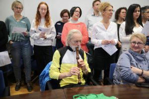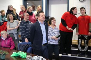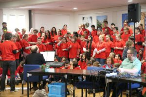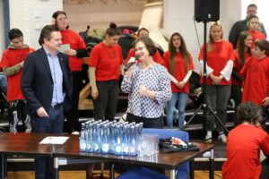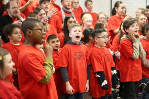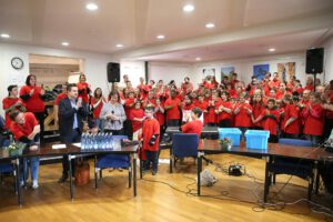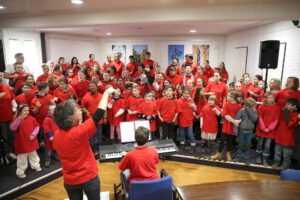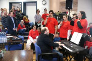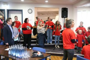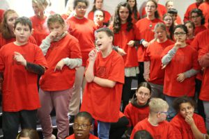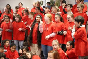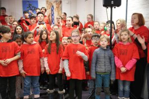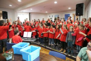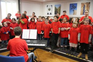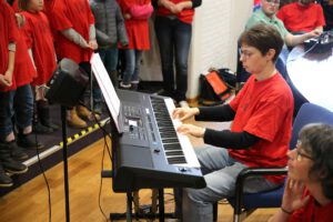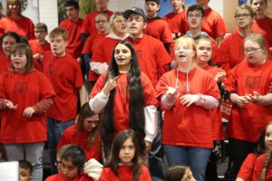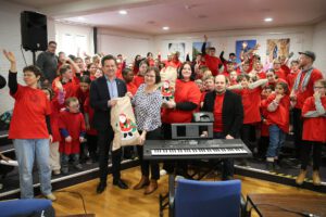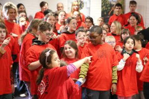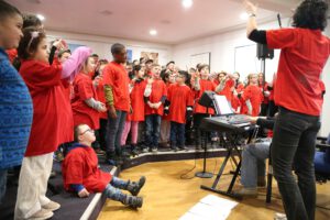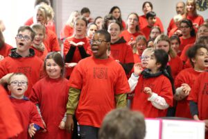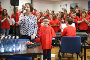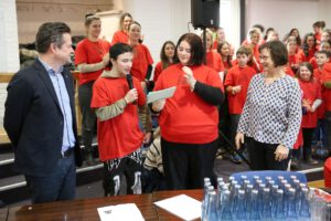 Mit Begeisterung präsentierten die Kinder und Jugendlichen der Helen-Keller-Schule eigene und bekannte Weihnachtslieder im Wiehler Rathaus.