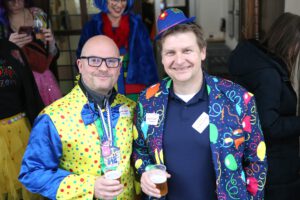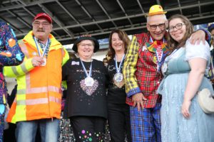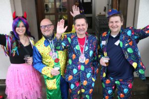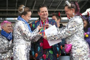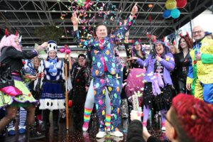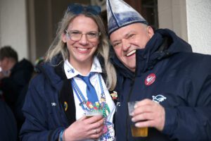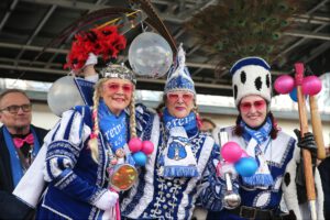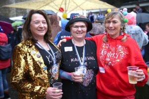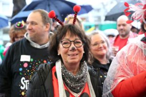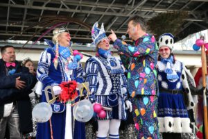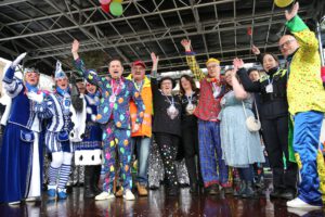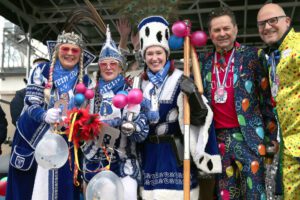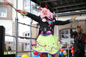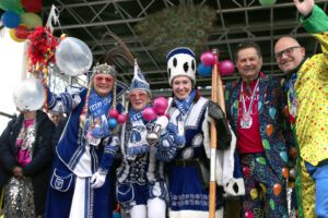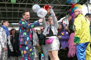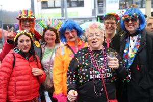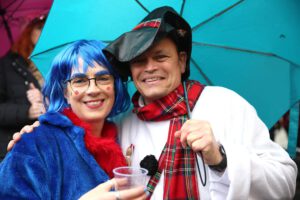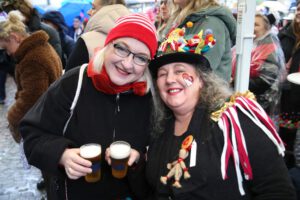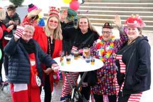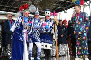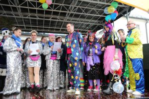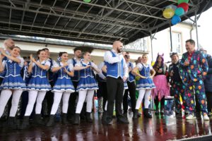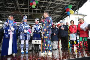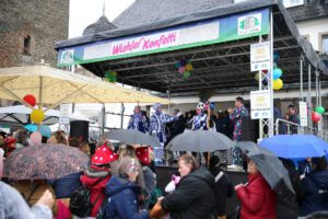 Dem Team des Rathauses blieb nichts weiter übrig, als fröhlich mitzufeiern, unter dem Motto: „Mit ner Pappnas´ im Konfettiregen feiern wir mit Euch das Leben!“ Daran konnte auch das Wetter nicht rütteln. Ab 11:11 Uhr ging ein buntes Programm über die Bühne vor dem alten Rathaus. Natürlich gab es zu kleinen Preisen auch Getränke und anderes fürs leibliche Wohl.