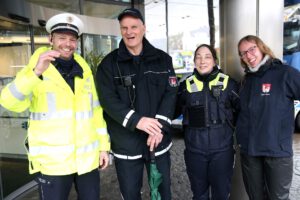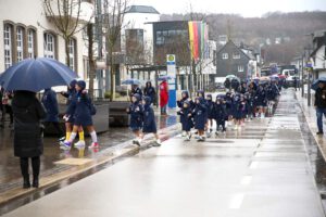 Dass es nicht nur Konfetti regnete, störte die Feierschar vorm Rathaus nicht. Alle lachten, schunkelten und sangen einfach mit. Und gratulierten dem Karnevalsverein Bielstein gleichzeitig zum Jubiläum: Die Jecken feiern dieses Jahr das 40-jährige Bestehen des Vereins. Nochmals herzliche Glückwünsche auch von dieser Stelle aus – mit einem dreifachen „Bielstein kapaaf!“