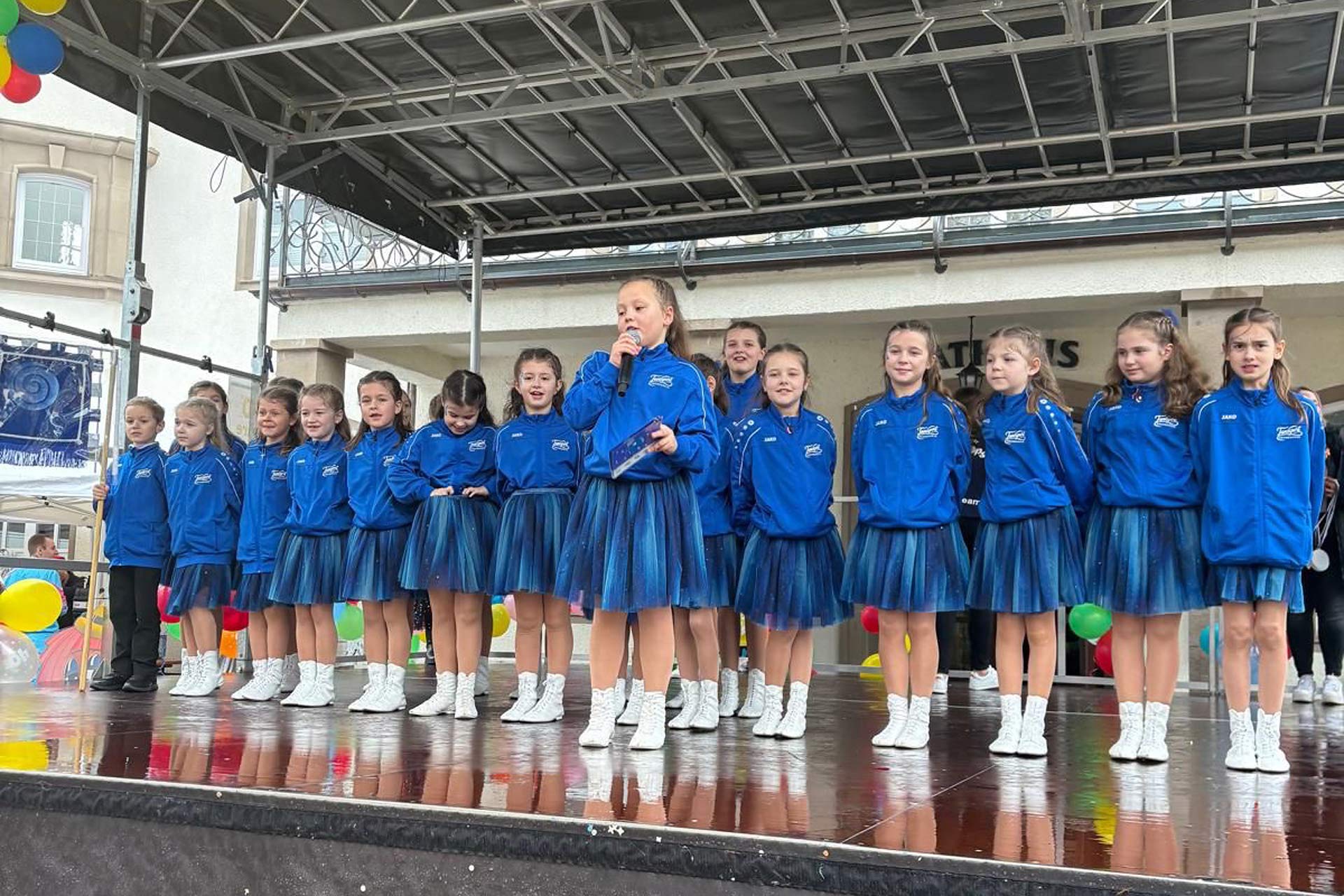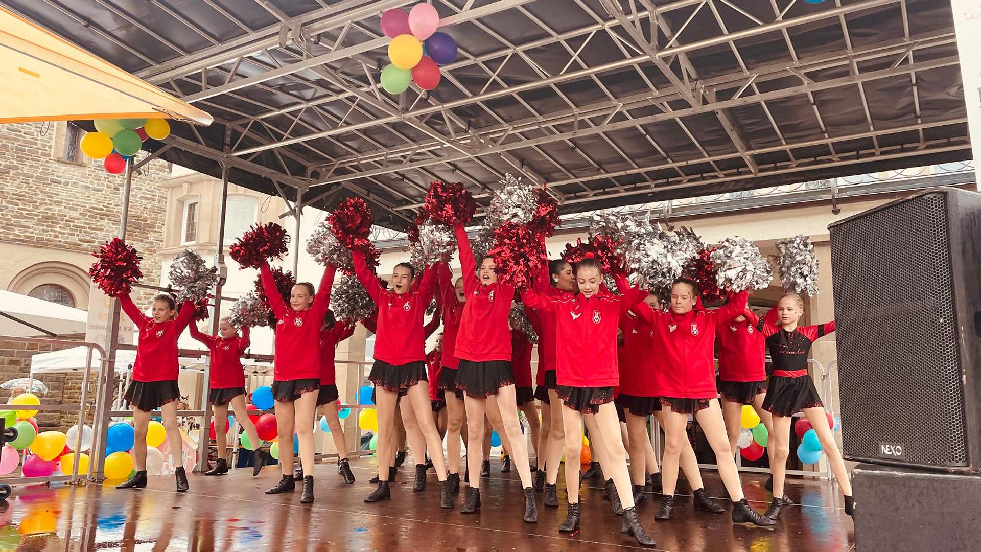 Weil die Bühne durch den Regen zuerst zu rutschig war, konnten die Tanzgruppen des Karnevalsvereins Bielstein nicht auftreten. Doch nachdem es ein wenig abgetrocknet hatte, nutzten die Tanzgruppen vom VfR Marienhagen und vom Tanzsport Oberberg die Chance für einen kurzen Auftritt.