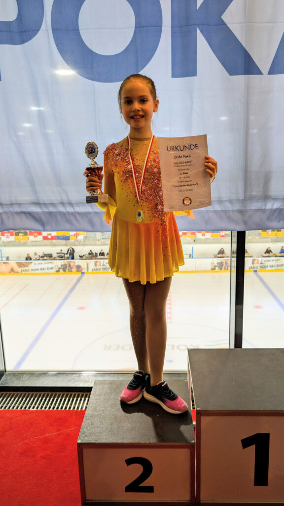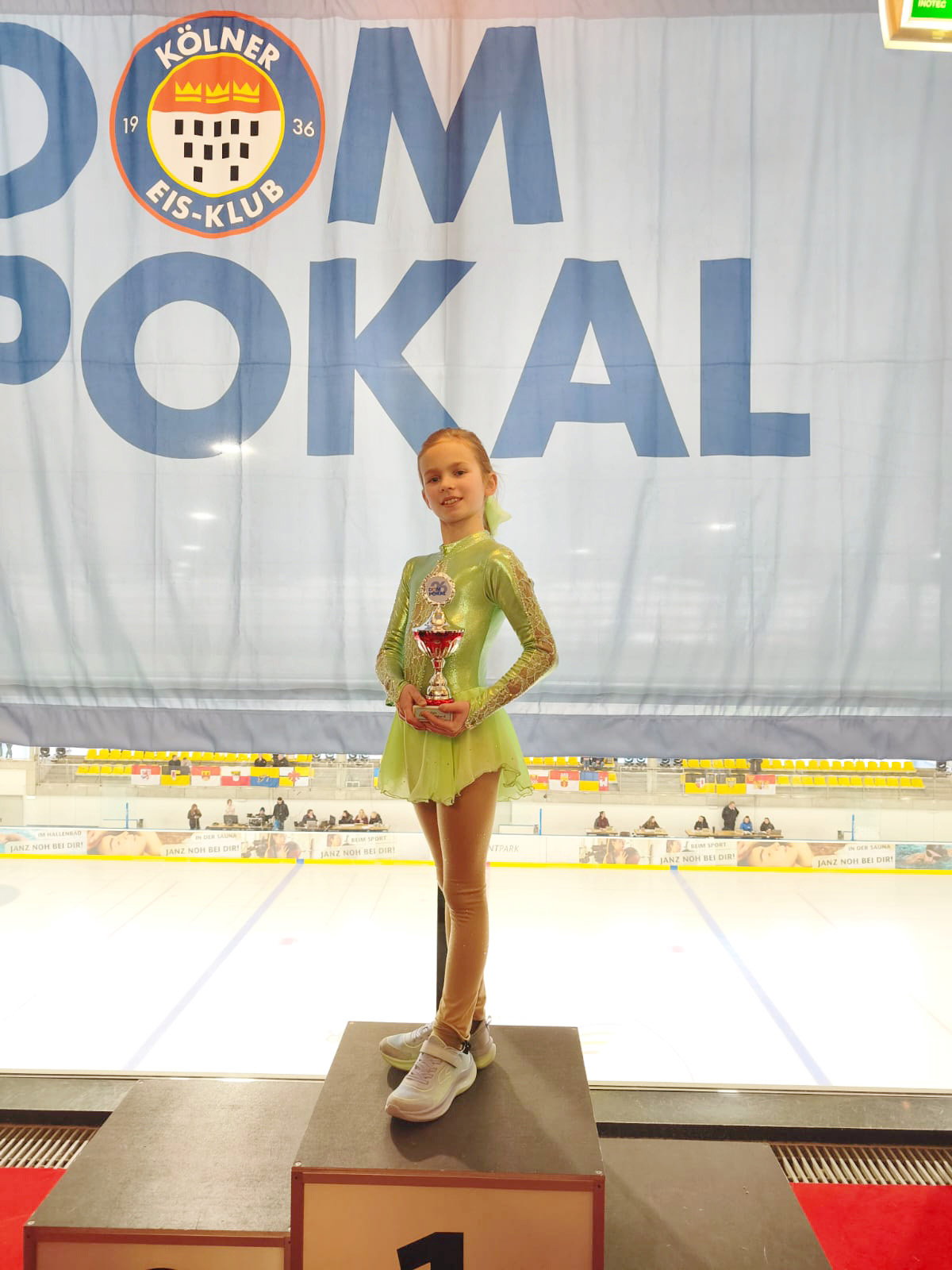 Auch in den höheren Kategorien gab es viel Grund zur Freude; so zeigte Lea Schmidt bei den Figurenläufern A ein fehlerfreies Kürprogramm, mit dem sie Platz 2 belegte, und Sofia Pavan erreichte in der Kategorie Figurenläufer B mit ihrer peppigen Kür zu Mambo Nr. 5 sogar den ersten Platz.