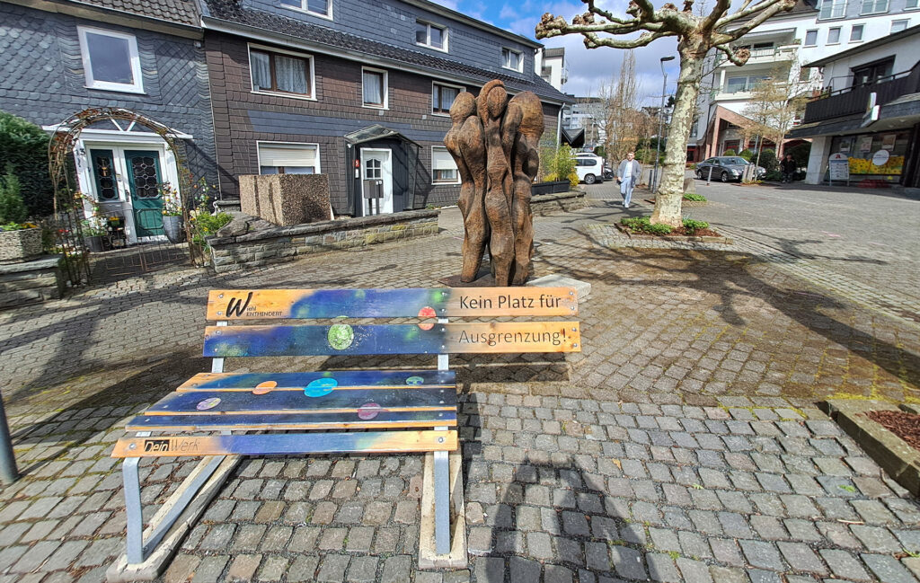 - Bildhauer Roland Glatz–Wieczorek präsentiert seine Skulptur „Du-Ich-Wir“, die seit dem 27. März vor dem Treffpunkt Inklusion steht, und lädt in einer begleitenden Kunstaktion zum Mitmachen ein. So wird Kunst erlebbar und lädt zum Mitgestalten ein.