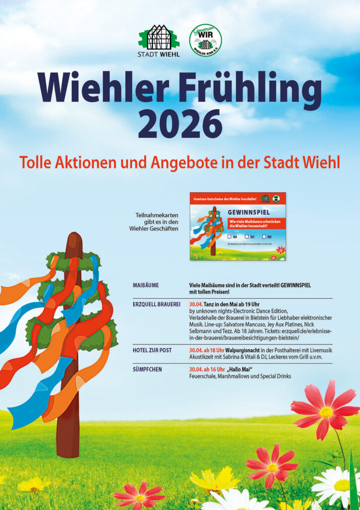 Zum „Wiehler Frühling“ 2026 schlagen nicht nur die Bäume aus: Im Stadtgebiet bietet sich ein bunter Strauß aus Veranstaltungen, Aktionen und Angeboten des Einzelhandels. Zum Auftakt wird in den Mai getanzt.